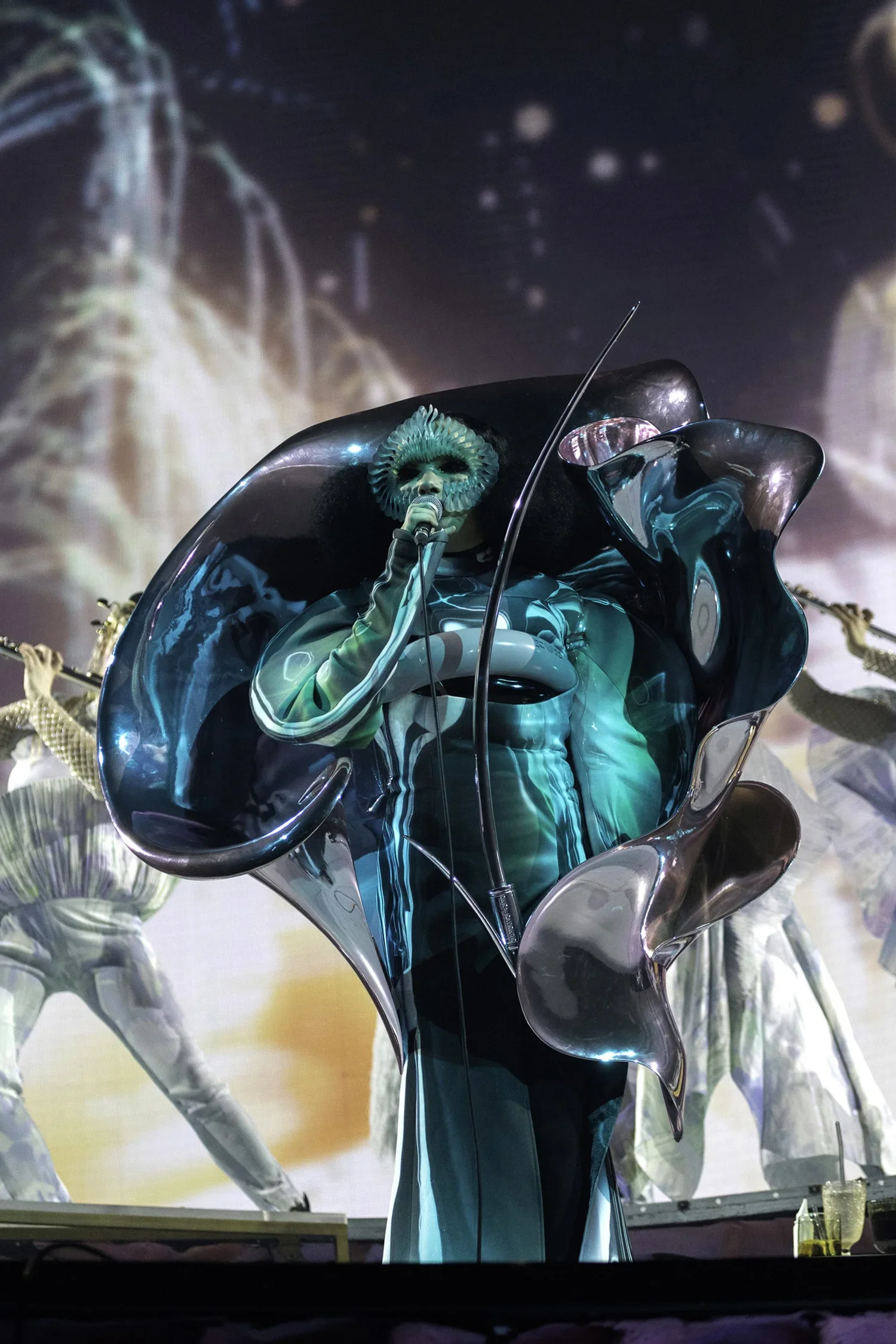 Figure 1. Björk performing her live show Cornucopia in Bordeaux, 5 December 2023. Photo by Santiago Felipe, all rights reserved. https://bjorktour.com/photos/cornucopia-bordeaux-5-december-2023